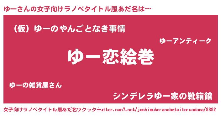 | 男性向けラノベタイトル風あだ名 | 『おまえをオタクにしてやるから、俺をゆーにしてくれ! 』 |