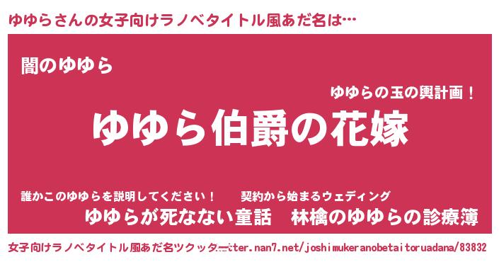 | ヒーロー風カッコイイあだ名 | 『ウルトラゆゆらマン』『仮面ユユダー』 |