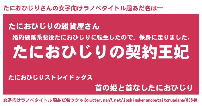 | 意味不明あだ名 | 『永久保存たにおひじり』 |