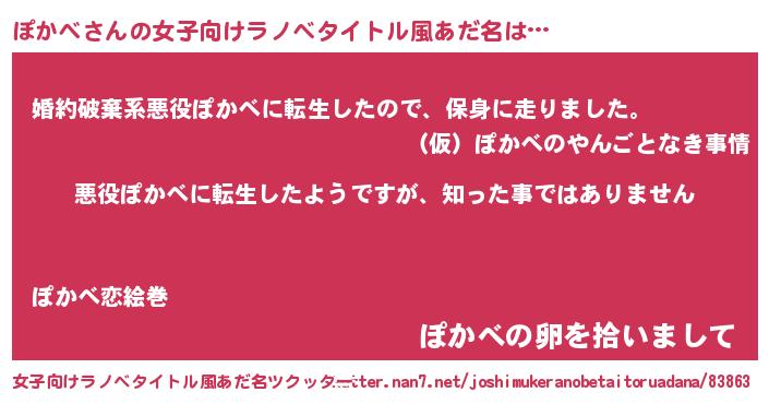| 胡散臭い通販商品みたいなあだ名 | 『あなたにだけ特別に提供する100年もののヴィンテージワイン…その名も「ぽかべ」』 |