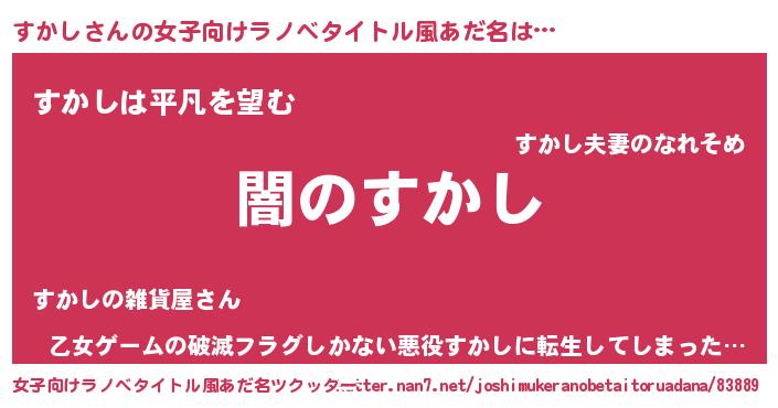 | 男性向けラノベタイトル風あだ名 | 『Re:すかしから始める異世界生活』 |