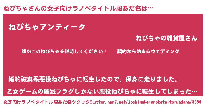 | 胡散臭い通販商品みたいなあだ名 | 『億万長者になれる霊験あらたかなお札…その名も「ねぴちゃ」』 |