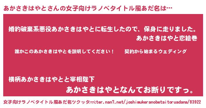 | 胡散臭い通販商品みたいなあだ名 | 『億万長者になれる水晶球…その名も「あかさきはやと」』 |
