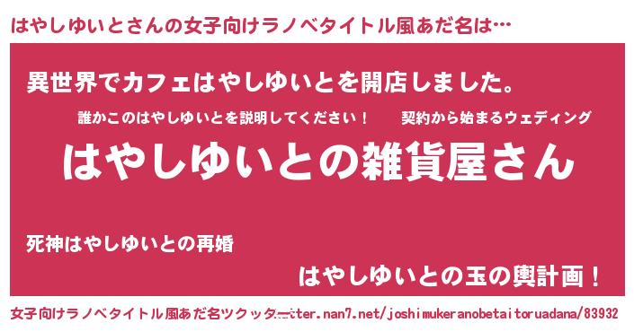 | ファンタジー風あだ名 | 『エターナルハヤシユイトー』 |