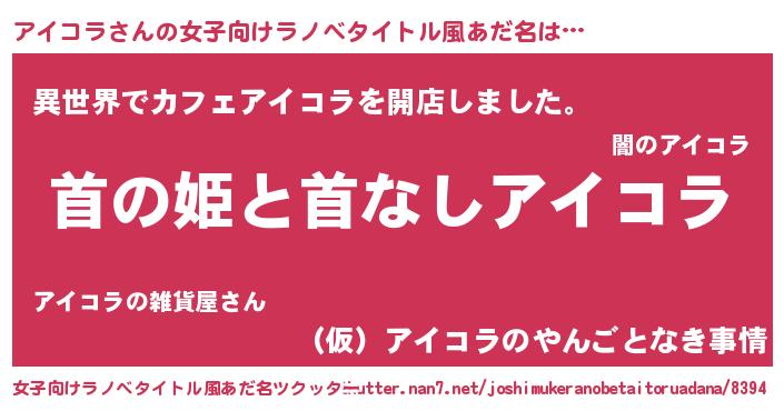| 胡散臭い通販商品みたいなあだ名 | 『絶対に幸福をもたらす健康食品…その名も「アイコラ」』 |