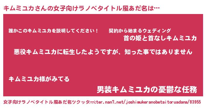 | 男性向けラノベタイトル風あだ名 | 『この素晴らしい世界にキムミユカを!』 |