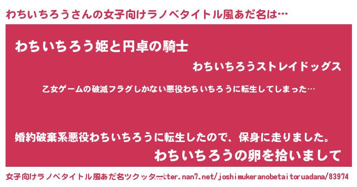 | 胡散臭い通販商品みたいなあだ名 | 『世界中を虜にした100年もののヴィンテージワイン…その名も「わちいちろう」』 |
