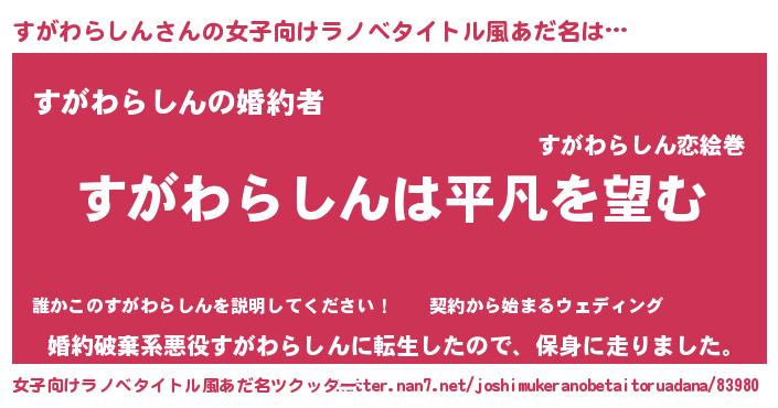 | 男性向けラノベタイトル風あだ名 | 『ダンジョンにすがわらしんを求めるのは間違っているだろうか』 |