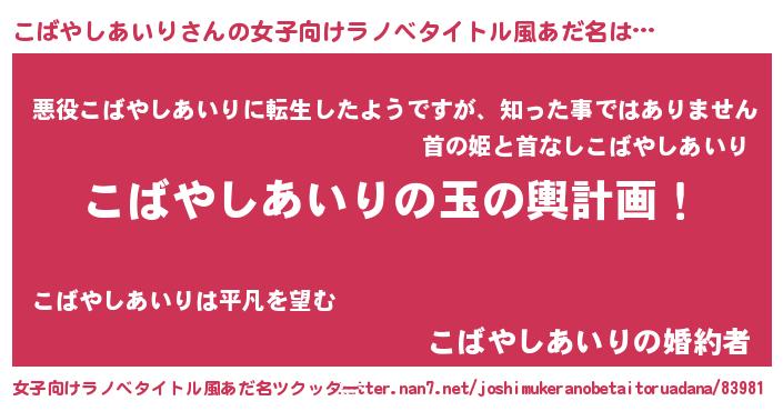 | 男性向けラノベタイトル風あだ名 | 『転生したらこばやしあいりだった件』 |