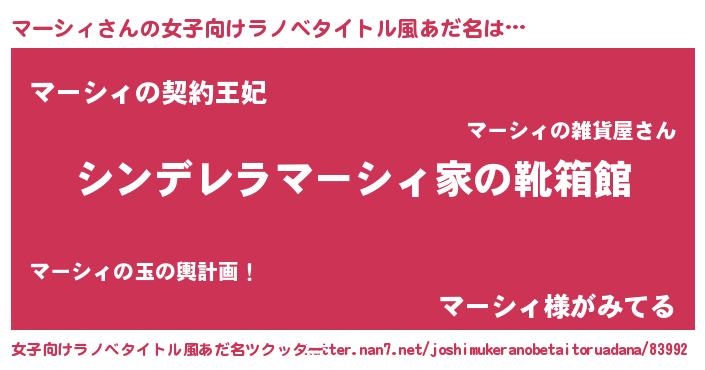 | ヒーロー風カッコイイあだ名 | 『ネオマーシィ』『幻影騎士マー』 |