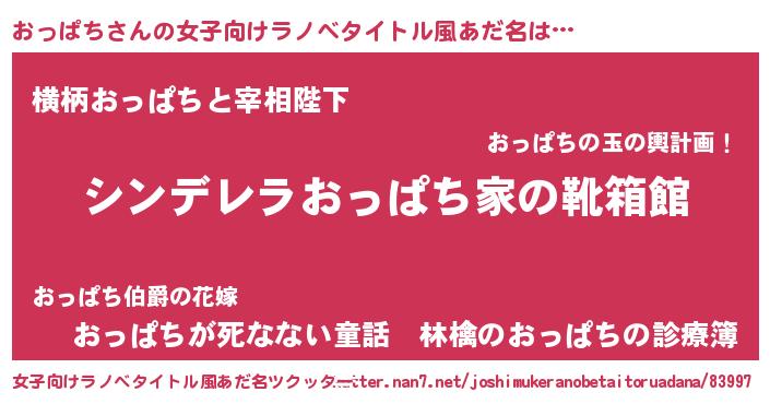 | 男性向けラノベタイトル風あだ名 | 『緋弾のオッパチ』『魔弾の王とおっぱち』 |