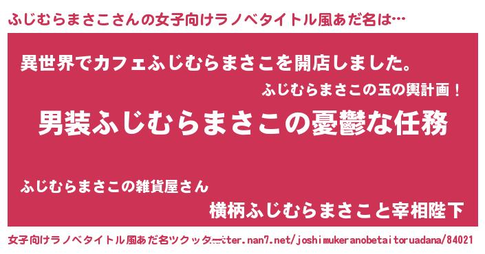 | 意味不明あだ名 | 『永久保存ふじむらまさこ』 |