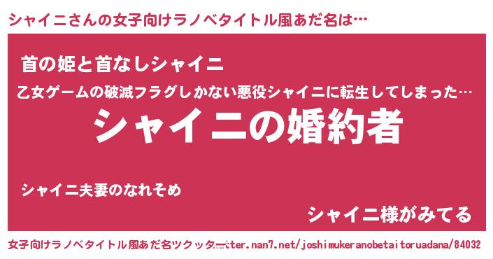 | 胡散臭い通販商品みたいなあだ名 | 『運命の人と巡り会える高級そうな壺…その名も「シャイニ」』 |
