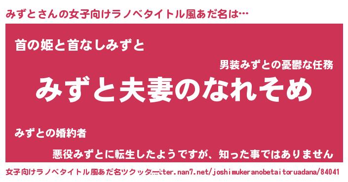 | ヒーロー風カッコイイあだ名 | 『正義の使者みずと』『仮面ミズダー』 |