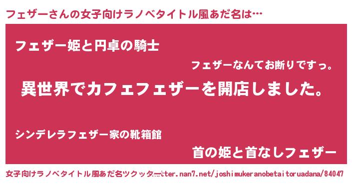 | ヘコむあだ名 | 『フェザー(震え声)』『フェふぇ~』 |
