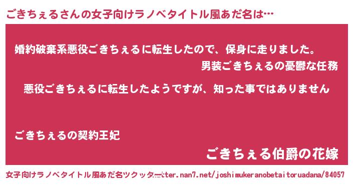 | 意味不明あだ名 | 『住所不定無職ごきちぇる(89歳)』 |