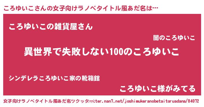 | 意味不明あだ名 | 『永久保存ころゆいこ』『自称ころゆいこ』 |