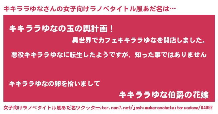 | 欧米人風あだ名 | 『ダレノガレキキララゆな』 |