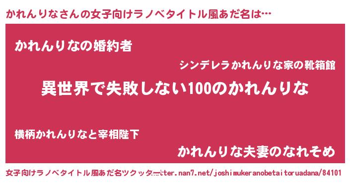 | 男性向けラノベタイトル風あだ名 | 『かれんりなという概念が存在しない退屈な世界 』 |