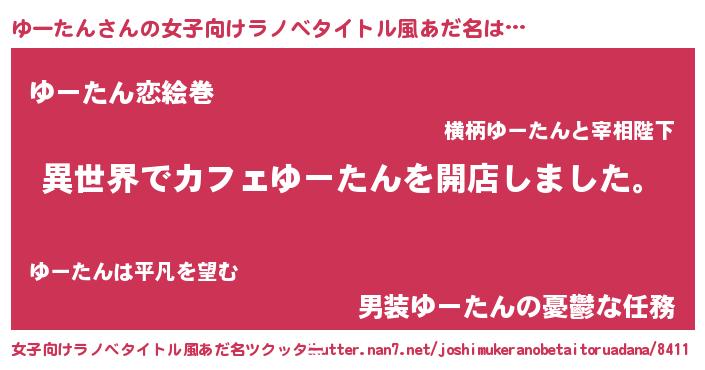 | ヘコむあだ名 | 『ゆーたん(笑)』『ゆーを』 |
