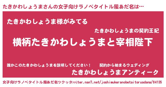 | 男性向けラノベタイトル風あだ名 | 『たきかわしょうまに滅ぼされるだけの簡単なお仕事です』 |