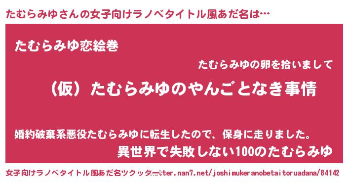 | 男性向けラノベタイトル風あだ名 | 『たむらみゆの憂鬱』 |
