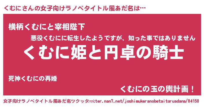 | 胡散臭い通販商品みたいなあだ名 | 『モテモテ間違いなし霊験あらたかなお札…その名も「くむに」』 |