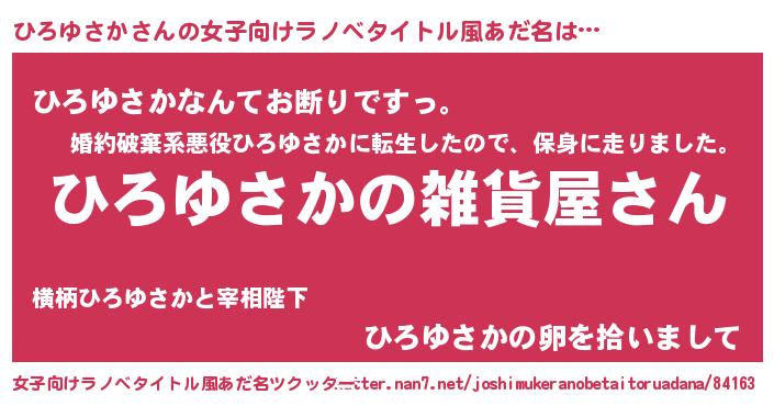 | 男性向けラノベタイトル風あだ名 | 『やはりひろゆさかの青春ラブコメはまちがっている 』 |
