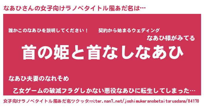 | 意味不明あだ名 | 『ペロリンなあひ』『自称なあひ』 |