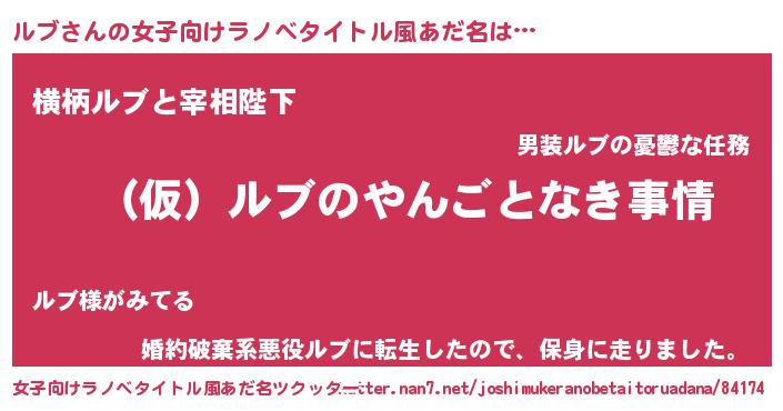 | 男性向けラノベタイトル風あだ名 | 『ルブの憂鬱』『転生したらルブだった件』 |