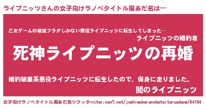 | 男性向けラノベタイトル風あだ名 | 『ノーゲーム・ノーライプニッツ』 |