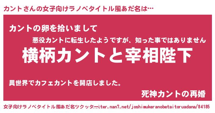| 男性向けラノベタイトル風あだ名 | 『カントに滅ぼされるだけの簡単なお仕事です』 |