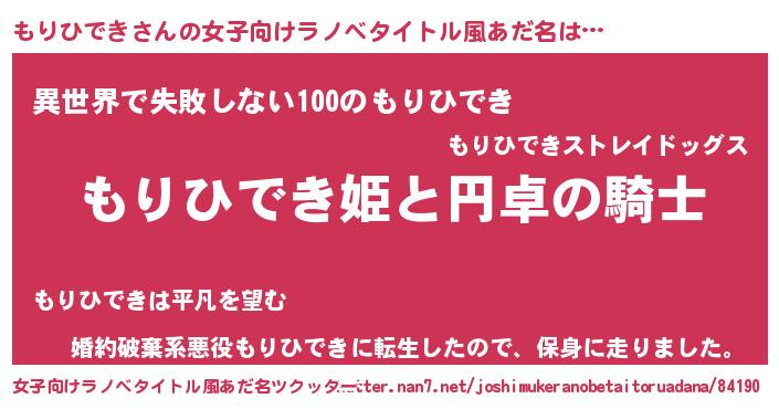 | 男性向けラノベタイトル風あだ名 | 『もりひできの憂鬱』 |