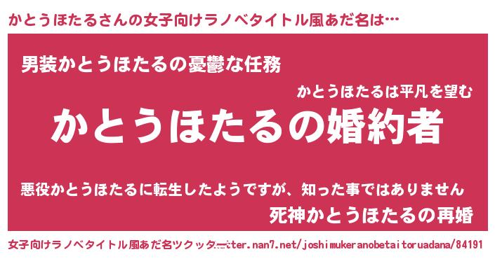 | 胡散臭い通販商品みたいなあだ名 | 『運命の人と巡り会える高級そうな絵画…その名も「かとうほたる」』 |