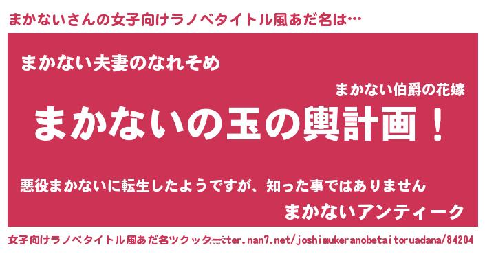 | 男性向けラノベタイトル風あだ名 | 『まかない~年齢イコール彼女いない歴の魔法使い~』 |