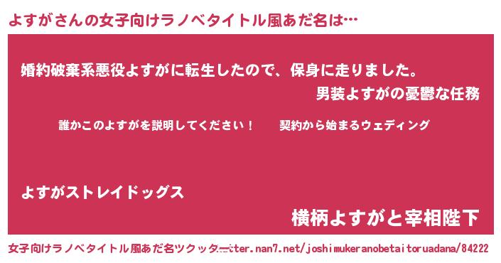| 胡散臭い通販商品みたいなあだ名 | 『億万長者になれる水晶球…その名も「よすが」』 |