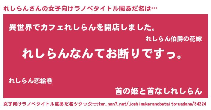 | 男性向けラノベタイトル風あだ名 | 『魔法科高校のれしらん』 |
