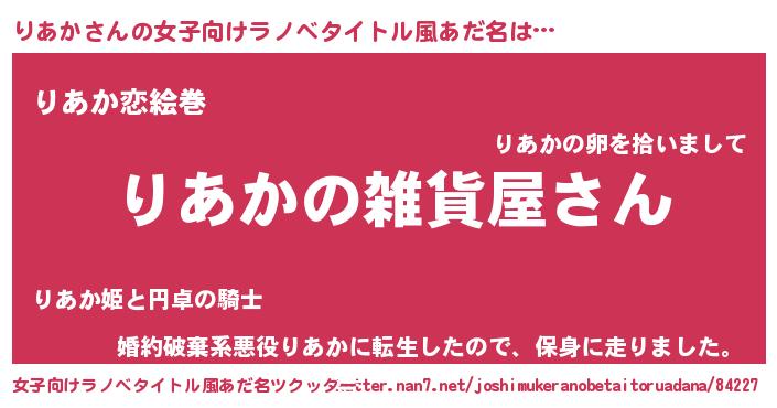 | 意味不明あだ名 | 『りあかフォーエバー』『ペロリンりあか』 |