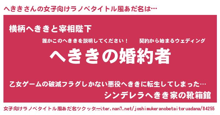 | ヘコむあだ名 | 『酢こんぶ』『へきにー』『へきを』 |