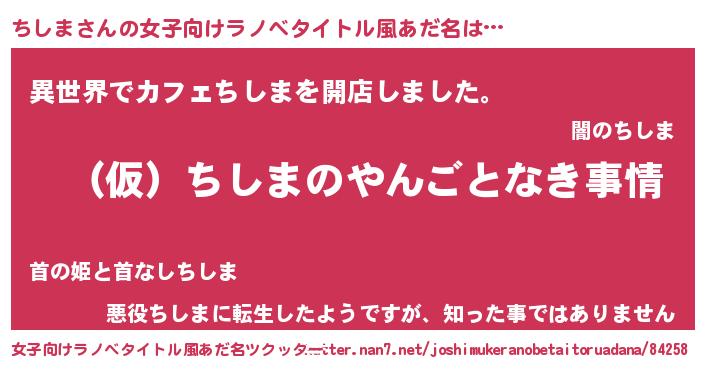 | 男性向けラノベタイトル風あだ名 | 『ちしまの憂鬱』『はたらくちしまさま!』 |