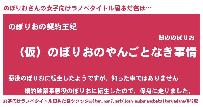 | 男性向けラノベタイトル風あだ名 | 『のぼりおの憂鬱』『ノボリオスレイヤー』 |