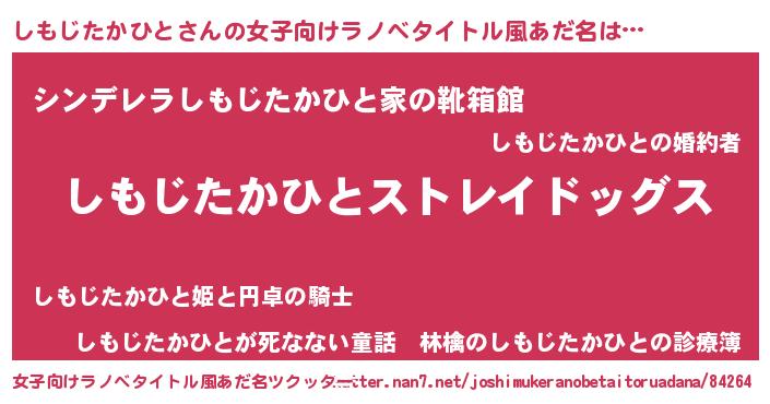 | 男性向けラノベタイトル風あだ名 | 『Re:しもじたかひとから始める異世界生活』 |