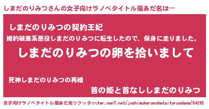 | 男性向けラノベタイトル風あだ名 | 『しまだのりみつの嫁は女の子じゃないと思った?』 |