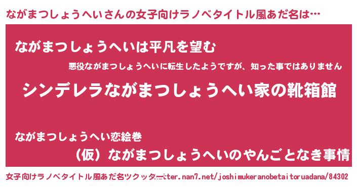 | 男性向けラノベタイトル風あだ名 | 『緋弾のナガマツショウヘイ』 |