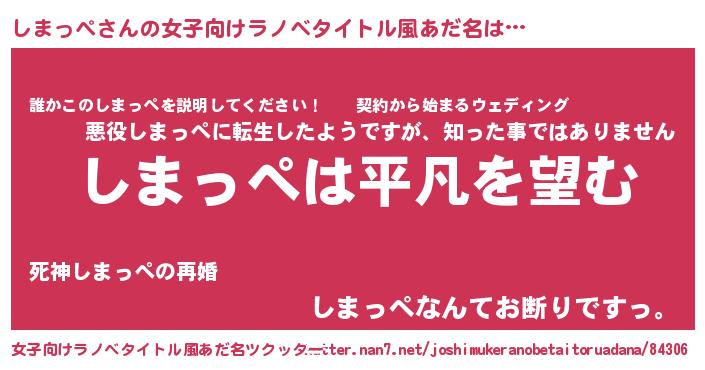 | 男性向けラノベタイトル風あだ名 | 『ダンジョンにしまっぺを求めるのは間違っているだろうか』 |