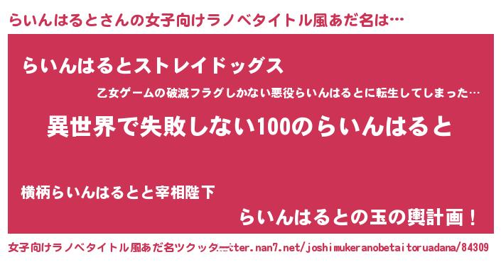 | 男性向けラノベタイトル風あだ名 | 『らいんはるとという概念が存在しない退屈な世界 』 |