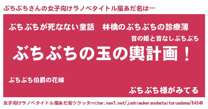 | 胡散臭い通販商品みたいなあだ名 | 『あなたにだけ特別に提供する100年もののヴィンテージワイン…その名も「ぶちぶち」』 |