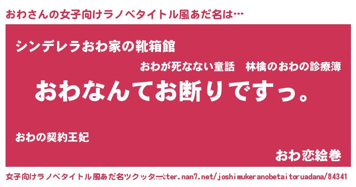 | 胡散臭い通販商品みたいなあだ名 | 『ガンによく効く高麗人参…その名も「おわ」』 |