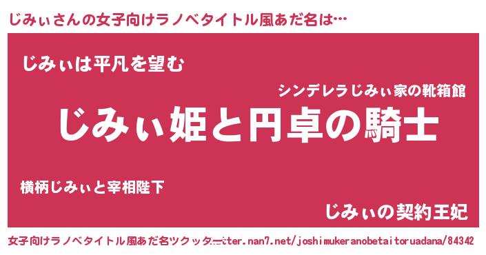 | 男性向けラノベタイトル風あだ名 | 『じみぃの憂鬱』 |