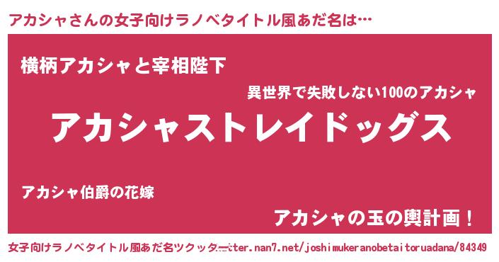| ヘコむあだ名 | 『アカシャ(爆)』『酢こんぶ』 |